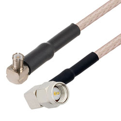 These RF coaxial cable assemblies are built with right angle MCX connection on one end and right angle SMA connection on the other. This right angle MCX to right angle SMA cable from L-com has a plug to male gender combination. L-com's RF cable assembly can be bent up to 1.57 inch with one time minimum bend radius of 0.59 inch.
