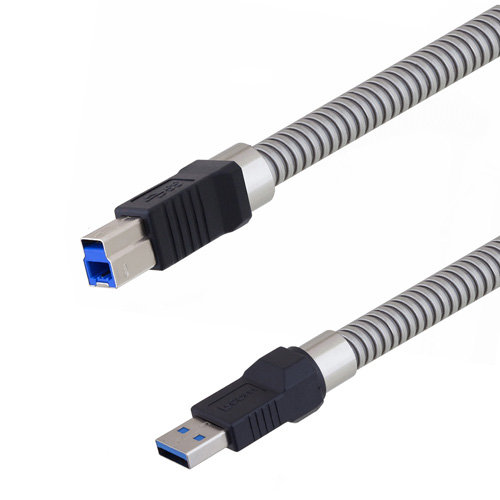 Metal Armored USB 3.0 Cable Assembly, Type A Male Plug to Type B Male Plug, 28/26/22AWG, Stainless Steel Armor, 2.0M