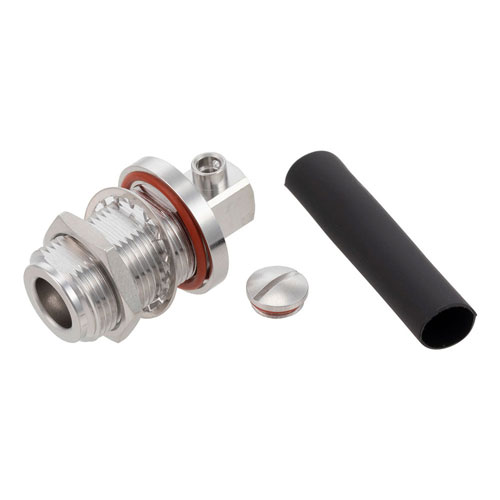 N Female Bulkhead Right Angle Low PIM Coaxial Connector, LC141TB, LC141TBJ, 6 GHz, 50 Ohms, Solder/Solder