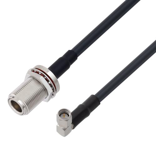 Low Loss N Female Bulkhead to SMA Male Right Angle Cable using LMR-240-UF Coax, 2 FT With Times Microwave Components with HeatShrink