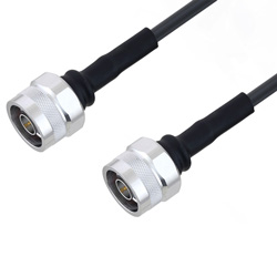 These RF low loss coaxial cable assemblies are built with N connection on one end and N connection on the other. This low loss N to N cable from L-com has a male to male gender combination. Our N male to N male coaxial assembly part number LCCA30153-FT6 can also be known as low loss N plug to N plug cable assembly when using alternate gender names.