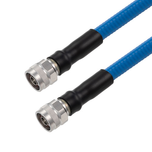 These RF coaxial cable assemblies are built with N connection on one end and N connection on the other. This N to N cable from L-com has a male to male gender combination. Our N male to N male coaxial assembly part number LCCA31059-FT2 can also be known as N plug to N plug cable assembly when using alternate gender names.