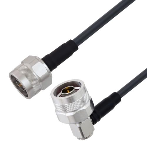 Low Loss N Male to N Male Right Angle Cable Assembly using LMR-195-UF Coax, 25 FT With Times Microwave Components with HeatShrink