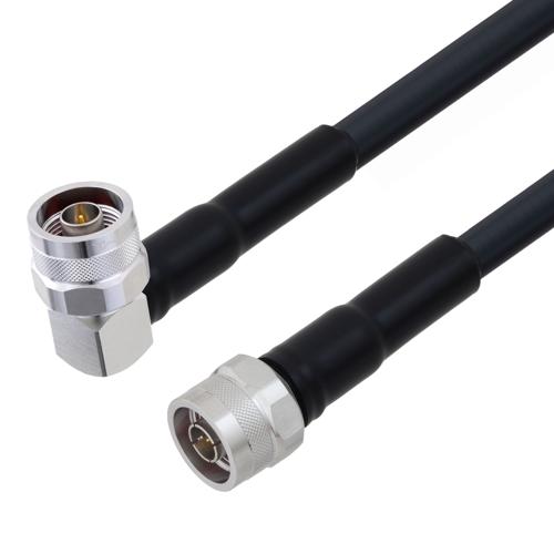 Low Loss N Male Right Angle to N Male Cable Assembly using LMR-400-UF Coax With Times Microwave Components with HeatShrink