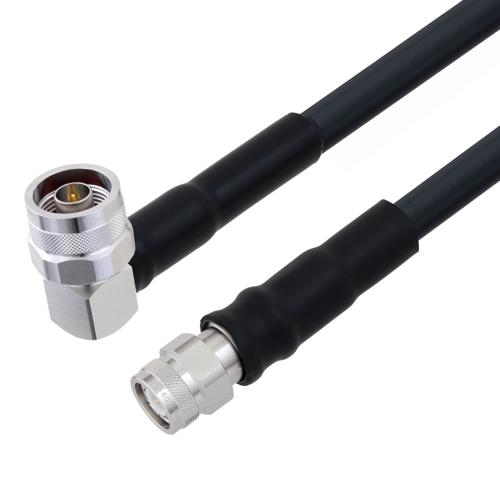Low Loss N Male Right Angle to TNC Male Cable Assembly using LMR-400-UF Coax With Times Microwave Components with HeatShrink