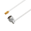 These RF coaxial cable assemblies are built with right angle N connection on one end and SMA connection on the other. This right angle N to SMA cable from L-com has a male to female gender combination. Our N male to SMA female coaxial assembly part number LCCA30614-FT3 can also be known as right angle N plug to SMA jack cable assembly when using alternate gender names.