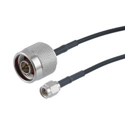 Low Loss N Male to SMA Male Cable Assembly using CA-100 Coax, 16 FT