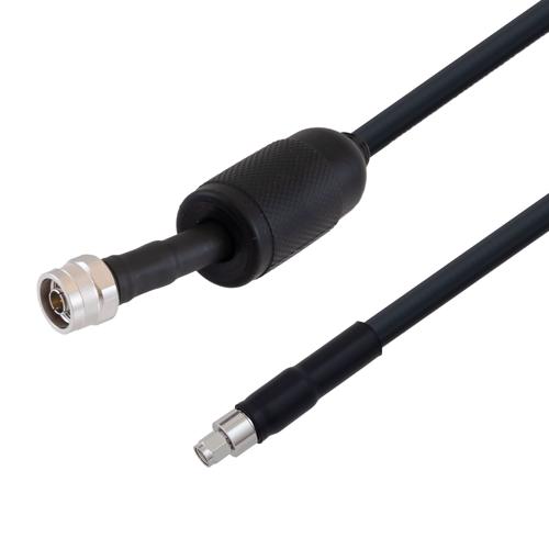 This weatherproof low loss RF cable assembly operates at a maximum frequency of 6 GHz. Our RF cable assembly has a PE jacket with 0.405 inches diameter. The type N male to SMA male cable assembly LCCA30289/WP-FT5 is built with LMR-400 coax, which has a flexible design.
