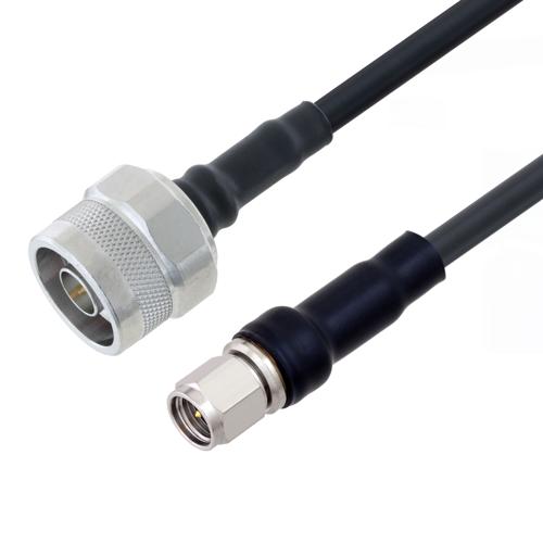 Low Loss N Male to SMA Male Cable Assembly using LMR-200-UF Coax, 5 FT With Times Microwave Components with HeatShrink, LF Solder