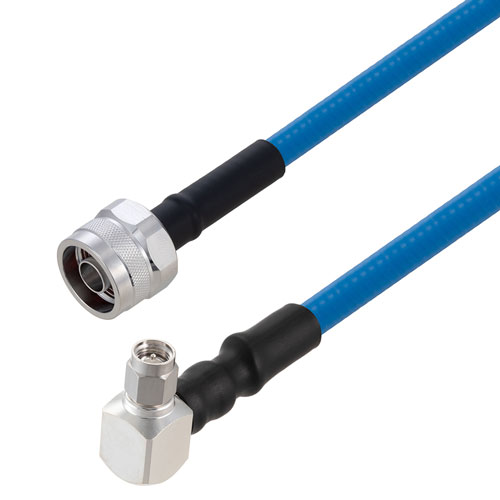 These RF coaxial cable assemblies are built with N connection on one end and right angle SMA connection on the other. This N to right angle SMA cable from L-com has a male to male gender combination. Our N male to SMA male coaxial assembly part number LCCA31034-FT4 can also be known as N plug to right angle SMA plug cable assembly when using alternate gender names.