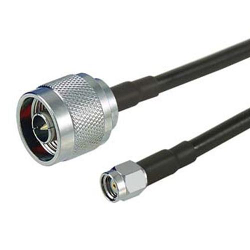Low Loss N Male to Reverse Polarity SMA Plug Cable Assembly using CA-195R Coax, 15 FT