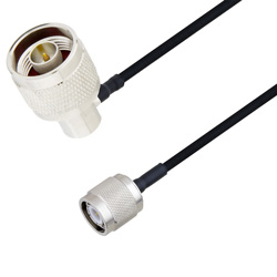 These RF coaxial cable assemblies are built with right angle N connection on one end and TNC connection on the other. This right angle N to TNC cable from L-com has a male to male gender combination. Our N male to TNC male coaxial assembly part number LCCA30646-FT3 can also be known as right angle N plug to TNC plug cable assembly when using alternate gender names.