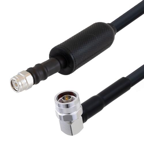 This weatherproof low loss RF cable assembly operates at a maximum frequency of 6 GHz. Our RF cable assembly has a PE jacket with 0.405 inches diameter. The type N male to TNC male cable assembly LCCA30306/WP-FT2 is built with LMR-400 coax, which has a flexible design.