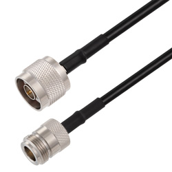 Maximum frequency for these N to N M/F cables is 1 GHz. Technical performance specifications on these 1 GHz N male to N female cables are located on the LCCA30671-FT1.5 datasheet PDF along with CAD drawing and dimensions. The L-Com RF cable assembly data sheet with specs, drawing dimensions can be found on this product page just above. Our Custom Cable Configurator is where to find and build customized versions of this RF coaxial assembly or many other connectors and coax combinations that all ship the same-day. This product can also be called a N female to N male cable assembly because it can be used in the opposite direction.
