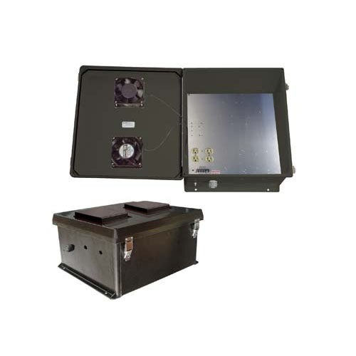 - Features aluminum mounting plate with surge protected duplex 120 VAC outlets & thermostat controlled cooling system