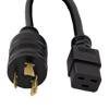 NEMA L6-20P - C19, SJTOW Power Cable, 250V, 20A, 12 AWG, 15 Feet