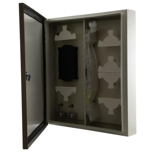 Introducing the L-com LCWB-24-WP, an outdoor single door fiber optic distribution management enclosure designed to withstand the rigors of outdoor environments. With a waterproof IP55 rating and a secure door featuring a gasket seal, the L-com LCWB-24-WP termination enclosure provides ultimate protection against moisture and dust ingress, ensuring reliable connectivity in outdoor installations. Crafted from durable SPCC Stainless Steel, it offers robust housing for your fiber optic connections, making it ideal for various outdoor applications, including FTTH access networks, telecommunication networks, CATV networks, LAN deployments, and data centers.