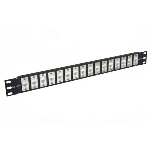 • 19" x 1.75" rack panel with 16 New Low Profile Category 5e Keystone Mini Couplers for high-speed data Applications