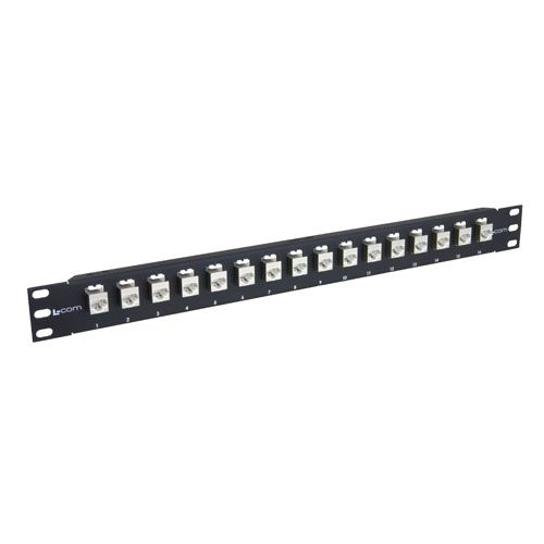 High speed network patching is made easy with L-com's keystone patch panels. L-com's unique straight and offset low-profile keystone couplers are pre-installed into standard 19" rack panels providing an easy method for coupling up to 16 or 32 category 5E grade patch cables on a rack. Panels have a black powder coat finish for durability and each port is numbered to simplify cable organization and tracking. Both shielded and non-shielded versions are offered to fit individual applications. Larger volume quotations are available; Contact us today!