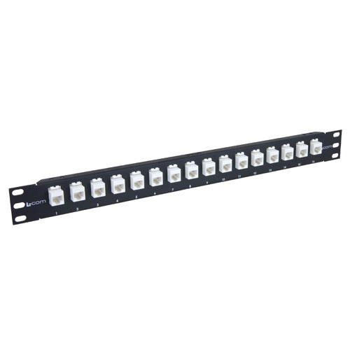 High speed network patching is made easy with L-com's keystone patch panels. L-com's unique straight and offset low-profile keystone couplers are pre-installed into standard 19" rack panels providing an easy method for coupling up to 16 or 32 category 5E grade patch cables on a rack. Panels have a black powder coat finish for durability and each port is numbered to simplify cable organization and tracking. Both shielded and non-shielded versions are offered to fit individual applications. Larger volume quotations are available; Contact us today!