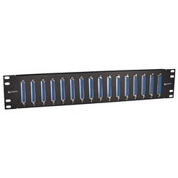 An L-com exclusive, four 19" x 3.5" rack panels are available with 16 shielded D-sub slimline couplers. Color of panel is black. Couplers female to female and fully shielded. Helpful white numbered legend printed 1-16.