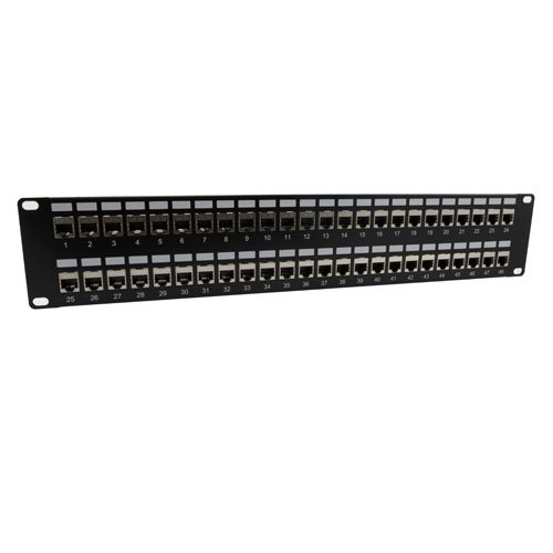 • 19" x 3.5" (2U) Rack panel with 48 Shielded Category 5e Keystone couplers for high-speed data applications provide protection against unwanted EMI/RFI emissions