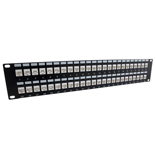 • 19" x 3.5" (2U) Rack panel with 48 Category 6 Keystone Low Profile Mini-couplers for high-speed data applications provide protection against unwanted EMI/RFI emissions