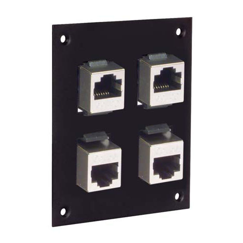 Universal Sub-Panel, 4 Category 5E Right Angle Shielded RJ45 Couplers