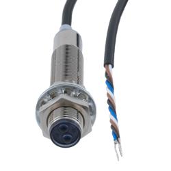 Picture of Photoelectric Sensor, M12 x 60mm, NPN NO+NC, Diffuse Reflection 0.2 meter Range, 2 meter 4-wire Cable, IP67, Brass