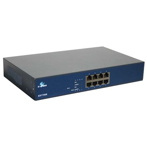 EtherWAN's EX17000 Series PoE 10/100BASE Fast Ethernet Web-Smart PoE Ethernet Switches are designed to operate in the small or medium network environment to provide Power to PoE driven devices, such as PoE IP cameras. These PoE switches may be desktop or rack mounted and all ports support IEEE802.3af Power over Ethernet (PoE) Power Sourcing Equipment (PSE) and can detect an IEEE802.3af compliant Powered Device (PD). Additionally the EX17000 Series switches feature a web browser interface that allows the user to configure IP settings, Port Based VLAN, QoS settings, and more.