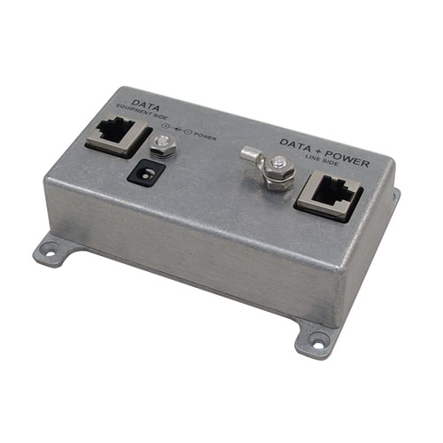 The BT-CAT5E-P1-HP features integral surge protection for the data and power feeds. The unit eliminates the need for an external surge protector and is designed to provide protection for expensive indoor equipment. The design provides protection for both common and differential mode surges. This unit can also be used as a stand alone lightning surge protector.
