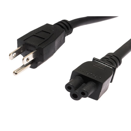 This power cable is often used for laptops, computers, and power supplies from manufacturers like Apple, Dell, IBM, and Toshiba. It has a Nema 5-15P which is the standard 3 prong plug that connects to your receptacle, and a C5 connector which is often refered to as a 'Clover Leaf'.