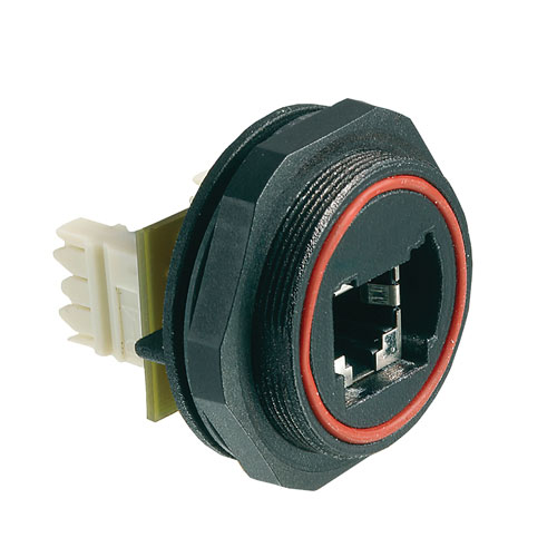 The Bulgin PX0839/IDC Cat 5e Ethernet standard buccaneer circular data connector offered by L-com is intended for use in harsh environments for a variety of high speed data protocols. Our circular data connector can withstand voltages of up to 42 V and currents up to 1.5 A. This IP68-rated Cat 5e dust- and waterproof connector features two IDC blocks for discrete termination and comes with a shielded RJ45 interface.