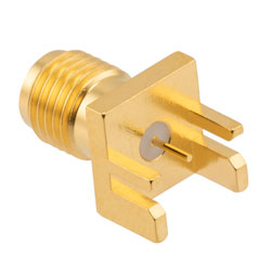 RF PCB Connector, SMA, Female, Up to 18 GHz, Edge Mount, Straight, 0.051 inch PCB Thickness, 0.020 inch pin diameter