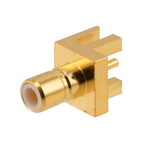 RFPCB-SMB-F-S-4G-29 SMB jack PCB connector available from L-com has a 50 Ohm impedance. This RF connector has an end launch connector mount interface and is designed for a wide variety of Printed-Circuit Board (PCB) applications in RF and microwave systems. The SMB connector is available in a 0.46-inch length, 0.26-inch width, and 0.26-inch height.