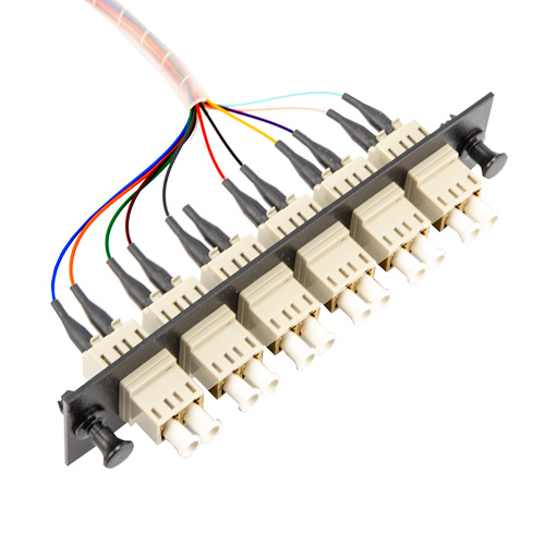 Six-Pack Duplex Adapters, LC/PC 12 Fiber Pigtails, 50/125, 3 Meters, Black