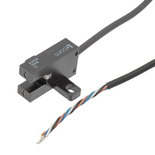 L-com’s PXSLST-303NA-W slot sensor has sensing distance or slot width of 5 mm which can detect opaque objects having size greater than 1.2 x 1.8 mm effectively preventing detected objects from hitting the bottom of the slots. The illuminator emits Infrared light having wavelength 940 mm and the photodetector receives light without obstruction. But, when an object passes through the T shaped slot, the light gets blocked, and the detector generates the corresponding output signal.