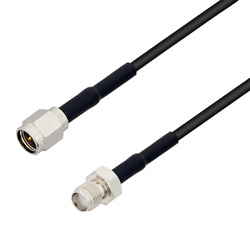 These RF low loss coaxial cable assemblies are built with SMA connection on one end and SMA connection on the other. This low loss SMA to SMA cable from L-com has a male to female gender combination. Our SMA male to SMA female coaxial assembly part number LCCA30379-FT2 can also be known as low loss SMA plug to SMA jack cable assembly when using alternate gender names.