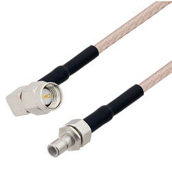 These RF coaxial cable assemblies are built with right angle SMA connection on one end and SMB connection on the other. This right angle SMA to SMB cable from L-com has a male to jack gender combination.