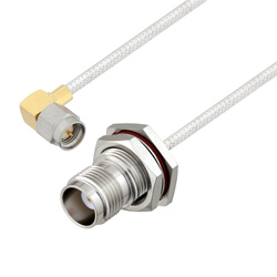 • Picture of Precision SMA Male Right Angle to TNC Female Bulkhead Semi-Flexible Cable Assembly using LC085TB Coax, 6 FT , LF Solder