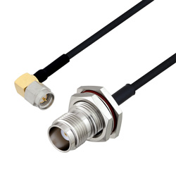 SMA male right angle to TNC female bulkhead cable assembly using LC085TBJ coax, 3 FT is just one of a large selection of in-stock RF products available. L-com not only has this off-the-shelf and custom versions of our right angle SMA to TNC cable assembly available for same-day shipping, but we also have thousands of other products that have same day shipping. Because of all these reasons and more, L-com should be your number one source for wired and wireless connectivity products like our SMA male right angle to TNC female bulkhead cable assembly using LC085TBJ coax, 3 FT.