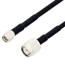 These RF coaxial cable assemblies are built with SMA connection on one end and TNC connection on the other. This SMA to TNC cable from L-com has a male to male gender combination. Our SMA male to TNC male coaxial assembly part number LCCA30360-FT3 can also be known as SMA plug to TNC plug cable assembly when using alternate gender names.