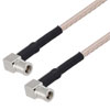 These RF coaxial cable assemblies are built with right angle SMB connection on one end and right angle SMB connection on the other. This right angle SMB to right angle SMB cable from L-com has a plug to plug gender combination.