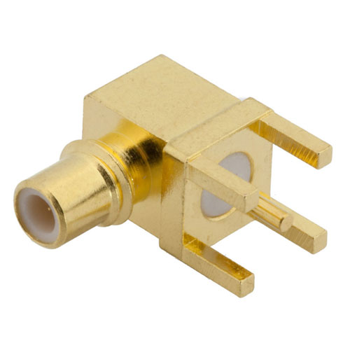 SMC Jack Right Angle Connector Solder Attachment Thru Hole PCB, .200 inch x .067 inch Hole Spacing