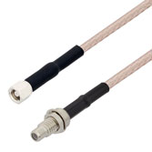 These RF coaxial cable assemblies are built with SMC connection on one end and SMC bulkhead connection on the other. This SMC to SMC cable from L-com has a plug to jack gender combination.