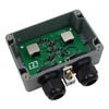 This unit features a weatherproof ABS enclosure with gasketed cover and concealed mounting holes. PG16 cable glands are provided on the enclosure as well as an external ground clamp to provide a tie point for earth ground. The PG16 cable glands are large enough to pass a un-booted RJ45 connector through so pre-terminated cables can be used.