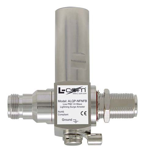 The ALQP-NFNFB is a broadband quarter wave DC-Block suppressor designed for 800-2250 MHz applications. This unit is designed to pass the desired frequency while suppressing lightning surges. This protector functions like a signal filter, operating within 800-2250 MHz. Lightning strike electrical surges which operate at low frequencies (outside the ALQP-NFNFB operating range) are diverted through the protector's ground. This protector's unique design provides equal protection no matter which way it is installed, typically not found on DC block type protectors.