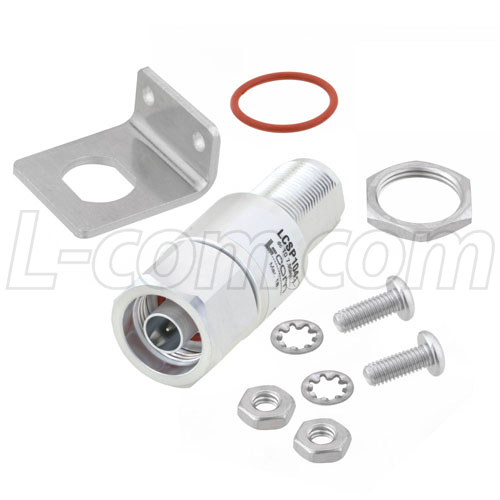 RF surge protector (also known as lightning arrester) LCSP1041 from L-com utilizing a proprietary gas tube surge protection technology protects critical hardware from lightening events while maintaining the RF performance. This RF surge protector component is manufactured in a coaxial in-line design with wide operating frequency range and available in stock with same day shipping.