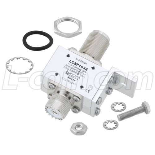 RF surge protector (also known as lightning arrester) LCSP1032 from L-com utilizing a proprietary surge protection technology protects critical hardware from lightening events while maintaining the RF performance. This RF surge protector component is manufactured in a coaxial in-line design with wide operating frequency range and available in stock with same day shipping. Optional weather proofing kit and copper cleaning kit are available for purchase separately.