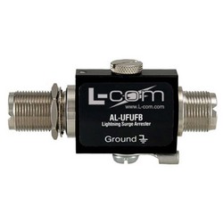 Lightning Protector Model AL-UFUFB-6 is a gas discharge tube suppressor featuring wide-band operation up to 3 GHz. This unit features a UHF-Female (Type SO239) to UHF-Female (Type SO239) Bulkhead connector with a rubber O-ring seal for mounting through an enclosure wall.